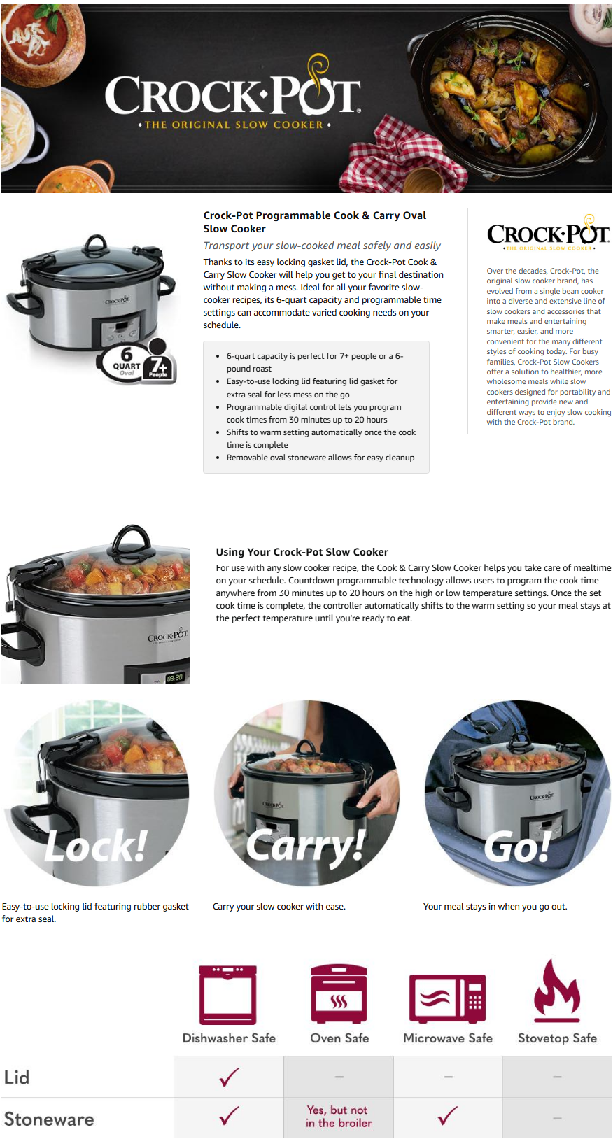 Crock-Pot 6 Quart Cook & Carry Programmable Slow Cooker with Digital Timer Stainless Steel (CPSCVC60LL-S) pack of 1